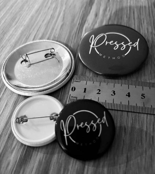 Every badge, whether it's a custom design or one of our printed options — is available in either size. Simply select your preferred size from the dropdown menu on each product page before adding to cart.